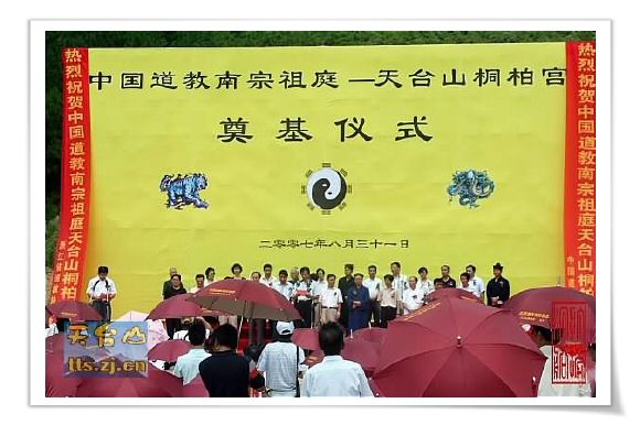 桐柏宫建于天台县城北二十里左右桐柏山西南瀑布岩,“高居群峰之上,俯临千仞之余“,最居形胜。此地“九峰环抱,碧溪前流,连山峨峨,四野皆碧,茂树郁郁,四时恒青,大岩之前,横岭之上,双峰如阙,中天豁开,长涧南泻,诸泉合漱,一道瀑布百丈洒流,望之雪霏,听之风起”。南宋以来,张紫阳真人等五位祖师,弘扬妙道,天下人从之者颇众,道风大振,于时成为中国道教南宗祖庭。