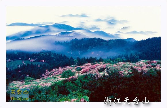 华顶山是国家重点风景名胜区天台山的主峰,海拔1098米,四周群山拱秀,峰岗重叠,这里云雾终年在峭崖洞间缭绕,或收息,或奔吐……,变幻莫测的云雾和绚丽多彩的花丛,构成了华顶峰上特有的云中花景。立身峰顶俯瞰,展现在眼前的是瞬息万变的奇妙景象,花在云中开,雾在花间飘,云雾与花海交映成趣,真是一时一景,全无雷同之处。